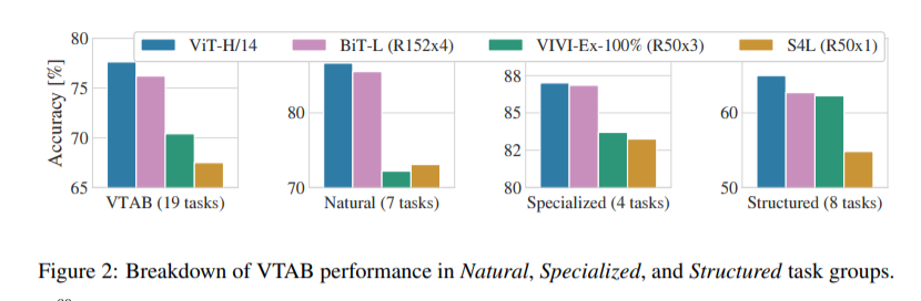 위는 VTAB task에 대해 기존의 SOTA와 비교한 그래프인데 ViT-H/14가 모든 task에서 가장 뛰어난 정확도를 보여주는 것을 알 수 있다.
