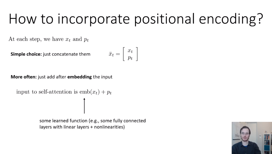 더 많이 사용되는 방법은 값을 embedding을 한 후 positional encoding을 더하는 것이다.