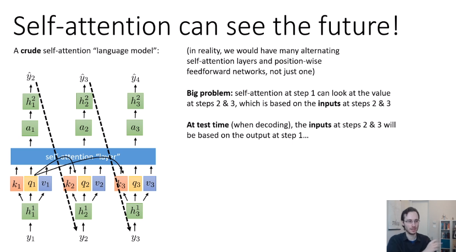 Naive Self-Attention의 문제는 step 1에서의 self-attention은 step 2&3의 값을 보는데 이는 또 step 2&3의 input을 베이스로 한다.