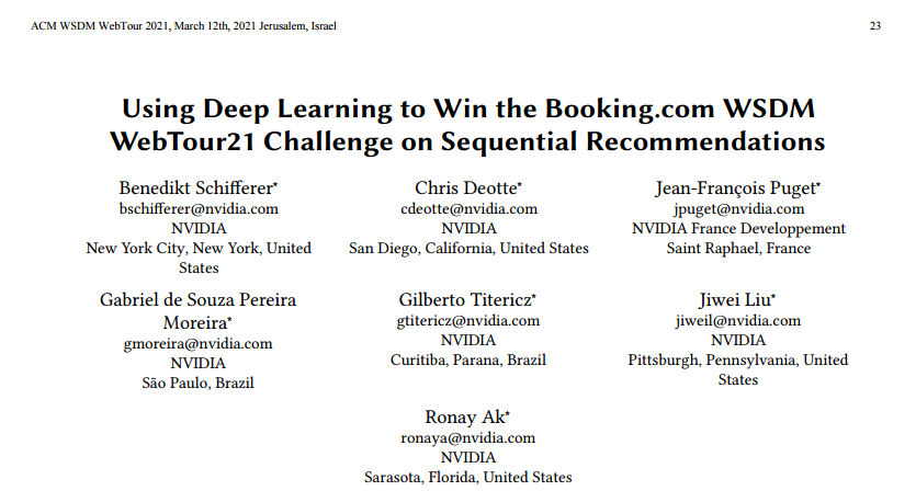 부킹닷컴에서 주최한 Challenge(WSDM Web Tour 21 Challenge)에서 우승한 팀으로 NVIDIA소속분들이 쓴 논문이다. 코드도 공개되어 있어 리뷰 후 한 번 돌려봐야겠다.