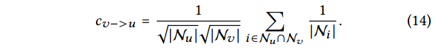 normalization term(아래식)은 기존의 GCN의 디자인을 따르는데, 이 term을 통해 embedding의 스케일이 graph convolution을 함에따라 계속해서 증가하는 것을 막을 수 있다.