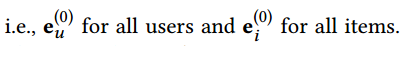 처음에 각 user와 item은 ID embedding과 연결되어있는데, 아래와 같이 정의해보자.