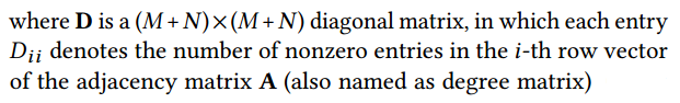 그러면 user-item graph의 adjacency matrix는 다음과 같다.
