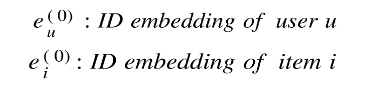 처음에 각 user와 item은 ID embedding과 연결되어있는데, 아래와 같이 정의해보자.