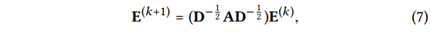 이를 위해서 계속해서 iterative하게 graph convolution을 진행하게 된다. 즉, 아래식과 같이 neighbors의 features를 aggregation하여 새로운 representation을 만든다.