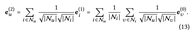 LightCGN의 symmetric fomulation때문에 item측면도 위의 user측면처럼 해석이 가능하다.