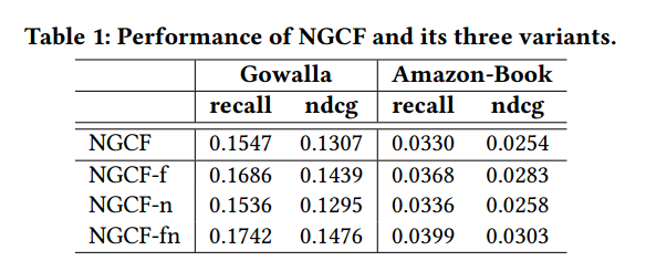 이러한 생각때문에, 저자들은 NGCF에 대해 ablation study를 진행했고 결론을 내렸다.