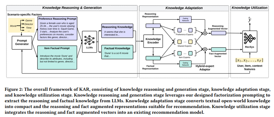 - KAR은 효과적으로 LLM을 사용해서 open-world knowledge를 추천시스템에 결합한 모델.