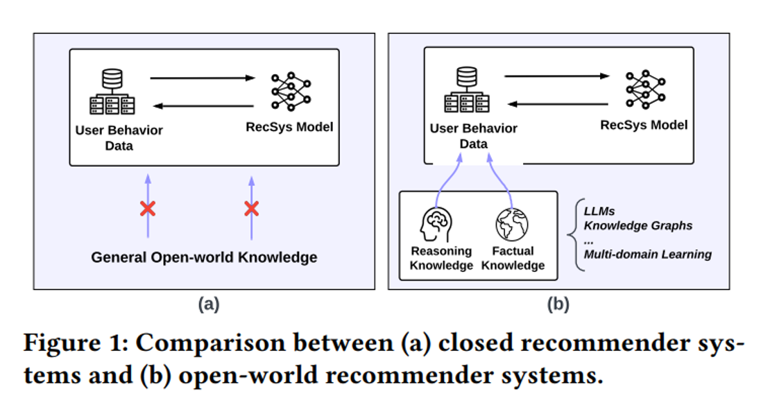 —> 이 논문에서는 추천시스템의 이점은 유지하되 효과적으로 open-world knowledge를 결합하고자 함.