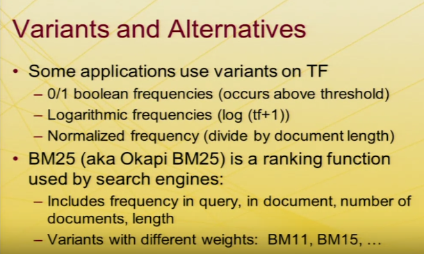 대부의 상황에서 Term Frequency는 무시된다. (Boolean값이나 thresholding 사용.)