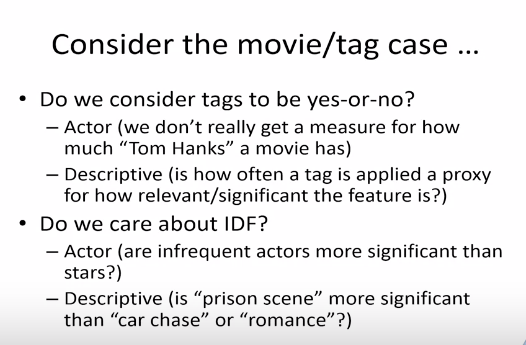 예를 들어 어떤 사용자가 타이타닉 영화를 좋아한다고 하면 이 영화의 태그 중 하나인, 레오나르도 디카프리오를 사용할 수 있다.