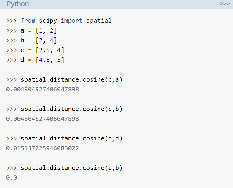 아까와 같이 scipy를 이용하여 cosine값을 구해보자.