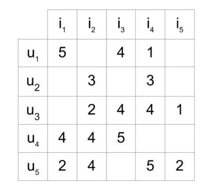 위의 Rating Matrix를 예시로 보자. 5명의 사용자의 5개의 아이템에 대한 평가 행렬이다.