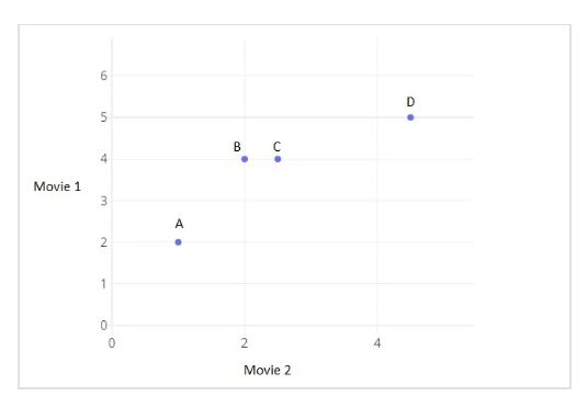 이 점으로 표현된 4명의 사용자들의 유사도를 측정한다고 할 때,