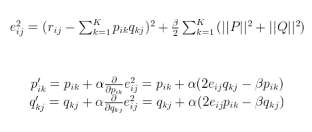 아래에서는 gradient descent방법으로 P,Q를 각각 update한다. (alpha는 learning rate)