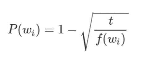 (딥러닝에서 쓰이는 드롭아웃이랑 비슷하게 생각하면 될 것같다. 너무 자주나오는 단어는 학습에서 제외될 확률이 높다. 차이점이라면 드롭아웃은 랜덤성을 부여해 오버피팅을 해결하는 방식이고 subsampling은 효율성의 측면에서 문제를 해결하는 방식이라 생각한다.)