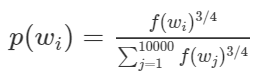 빈도수가 큰 단어일수록 negative sampling이 될 확률이 높다.
