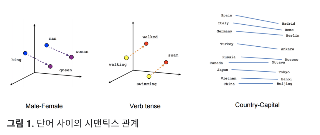 - 수백 개 정도의 요소를 가진 벡터를 사용하는 방법도 있다. 각 요소는 단어의 서로 다른 특성을 나타내는 0~1 사이의 값을 가진다.