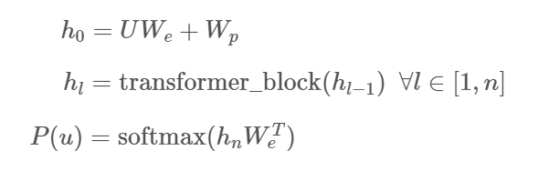 n은 layer의 수, 는 token embedding 행렬, Wp는 position embedding 행렬이다.