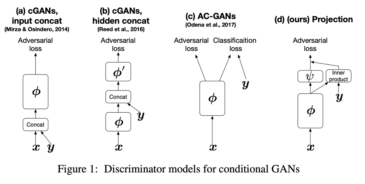 projection discriminator는 아래의 그림의 (d)를 보면 이해가 갈텐데