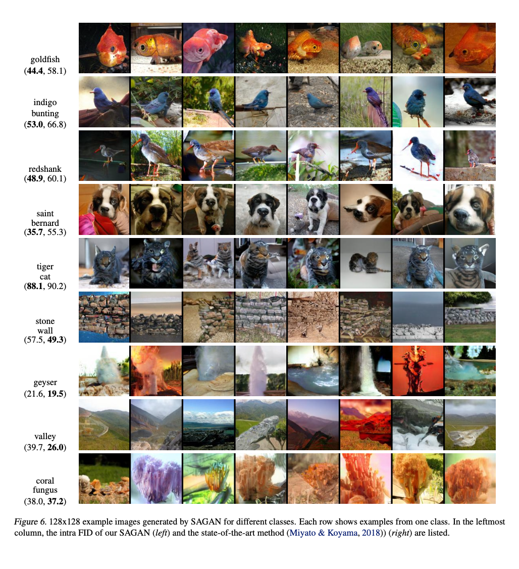 모든 SAGAN 모델들은 128X128 사이즈의 이미지를 만들어내도록 디자인되었다.