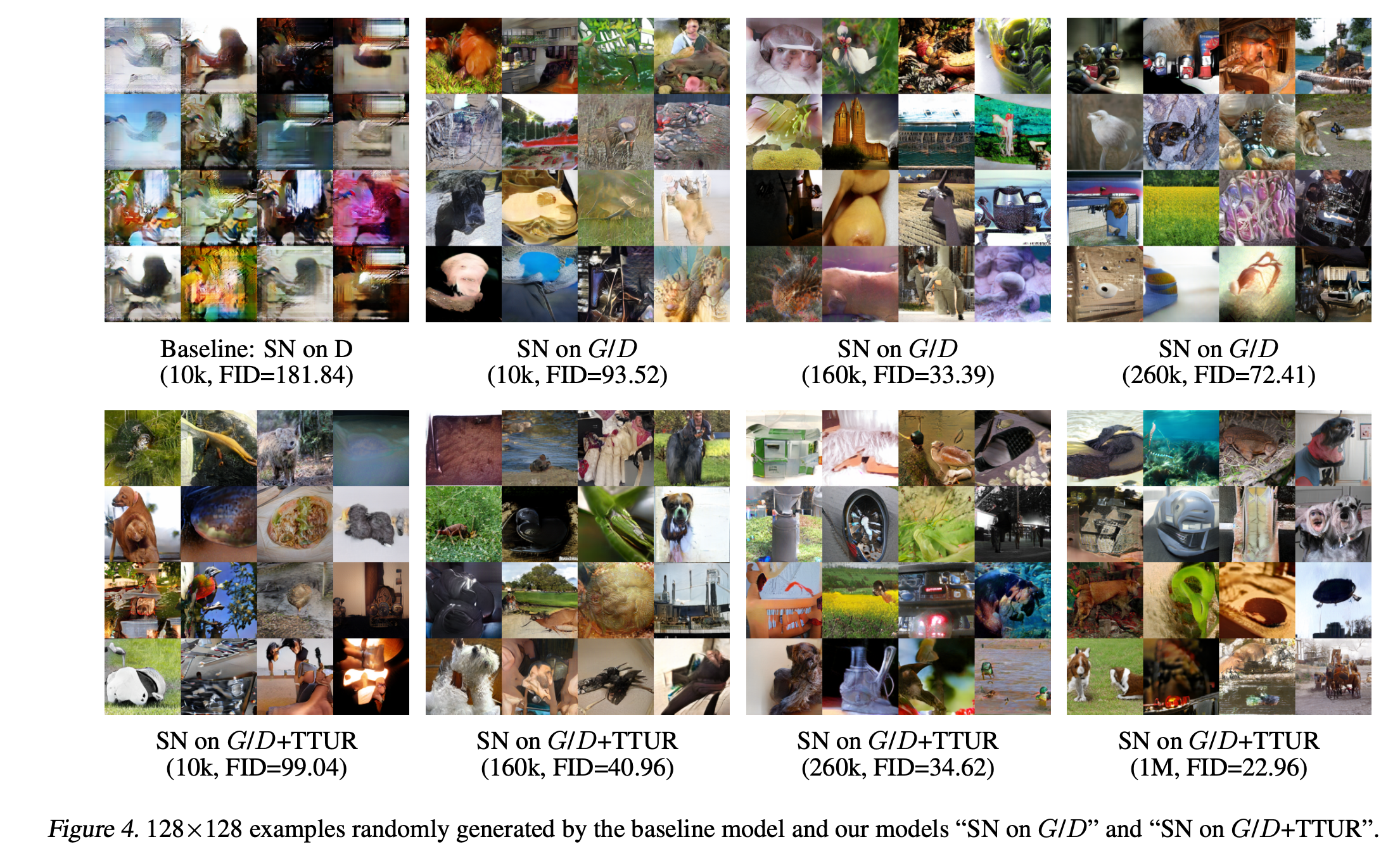 2. 정규화된 Discriminator에서의 느린 학습을 해결하기 위해 Two-timescale update rule(TTUR) 사용