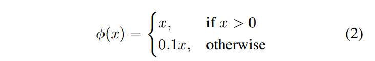 또한, final layer에는 linear activate function를 사용하고 다른 layers에는 다음과 같은 leaky rectified linear action를 사용한다.