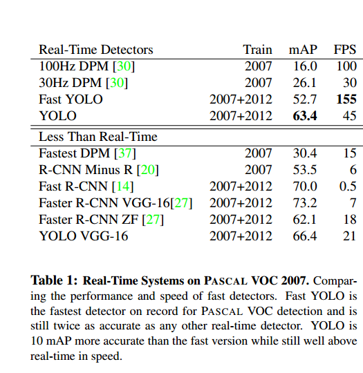 위의 결과표를 통해 YOLO의 우수함을 알 수 있다.