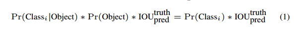 ($\Pr(Class_i | Object)$ 는 물체가 존재할 때 i번째 class일 확률이라고 생각하면 된다.)