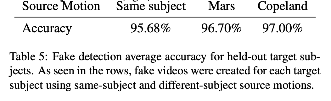 정량적인 수치로 굉장히 높은 값으로 fake detection이 가능함을 확인할 수 있다.