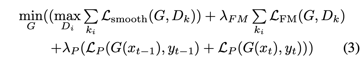이제 1>Temporal smoothing과 2>FaceGAN의 loss function을 합친 Full Objective는 다음과 같다.