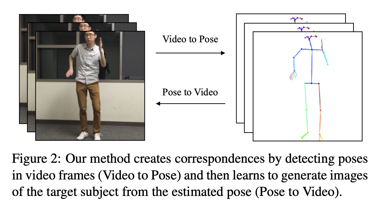 하지만, 이 논문에서는 target이 발레리나의 동작을 하는 비디오가 없다. 즉 supervised learning을 하기 위한 비디오 쌍을 가지고 있지 않다.