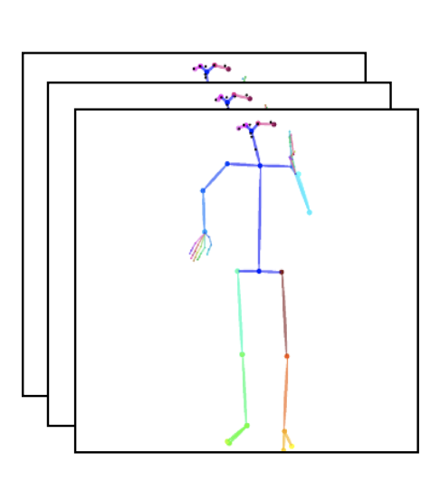 이 detector를 $P$라 해보자. $P$는 2D $x, y$ 좌표들을 정확하게 측정해낸다. 그 다음 이러한 keypoints를 그리고 선으로 연결하여 pose stick figure를 만들어낸다.